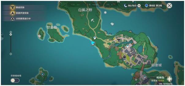 1、稻妻钓鱼协会的位置就在【稻妻-白狐之野】传送点处。