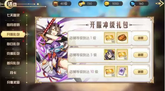 1.在礼包中的UR角色初樱姬可在活动-开服礼包中领取;自选礼包及代金券会在进入游戏后自动领取;