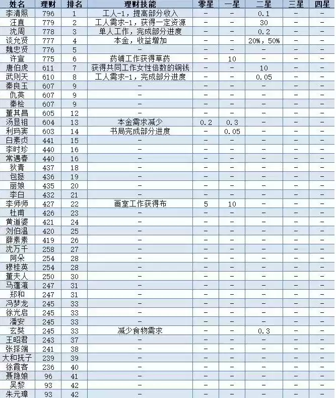 江南百景图全部天级人物一览表