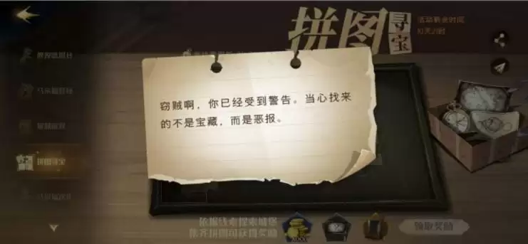 碎片信息:窃贼啊,你已经收到警告,当心找来的不是宝藏,而是恶报。
