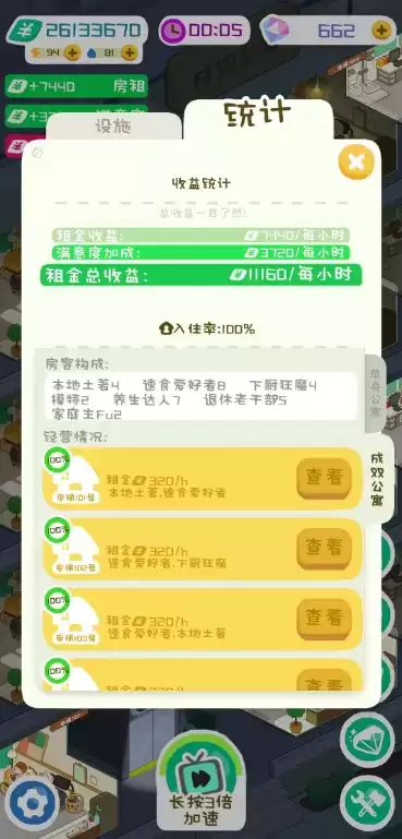 结识各种各样的租客,觉得社会畜生活太累?那就给减减租!觉得程序猿太孤单?升级个超级大圆床给他体验一下!安排租客生活,你就是最美房东!