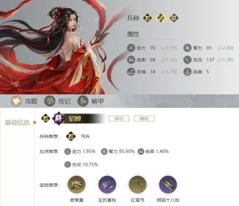 貂蝉:技能属性图鉴|宝物推荐|阵容推荐|加点培养攻略