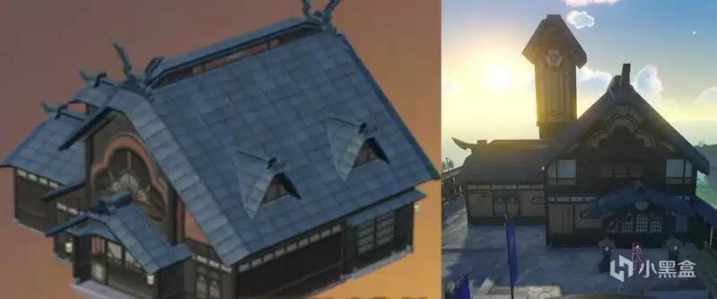 稻妻主屋,只有一个简单的缩略图。不过冻梨在稻妻城发现了不少类似的建筑,非要找个最相似的,可以参考天守阁外桥头的奉行所,把第二层的窗户去掉就挺相似了。