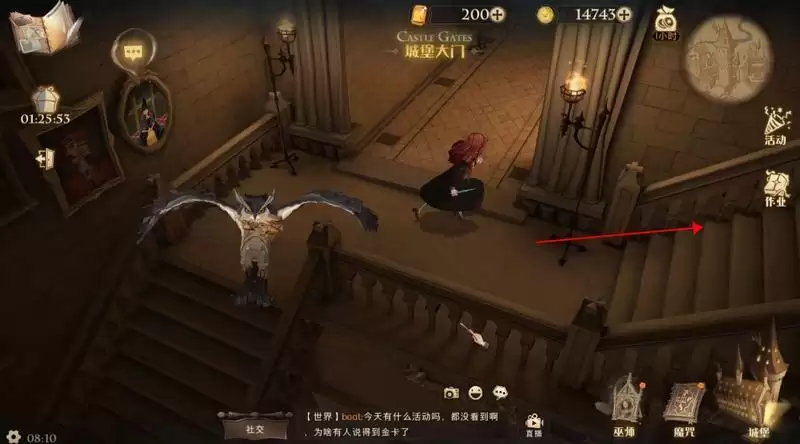 2、可以先进入城堡主楼,然后往右边的楼梯、右边楼梯上走