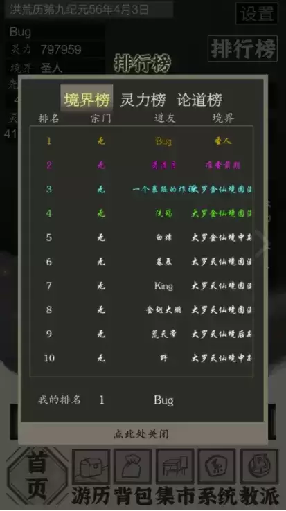 来源:游历-游历八荒-游历洪荒;洞天福地;紫霄论道;三十六重天;点数转换。