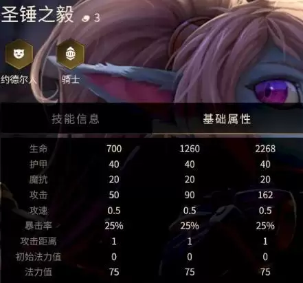 圣锤之毅在金铲铲之战游戏中近战控制坦。面板属性较为优质坦度较高,技能群控(2星与3星群控)高伤害,还能眩晕敌方2/3/5,控制时间较长技能非常优质,法力值0/75,作为前排来说技能释放较快。羁绊方面触发约德尔人羁绊躲避提升,变相增强棋子坦度另一羁绊骑士增强团队格挡也会增强坦度。下面手游网小编就给大家带来了《金铲铲之战》圣锤之毅技能属性装备介绍,感兴趣的小伙伴一起来看看吧,希望可以帮助到大家。