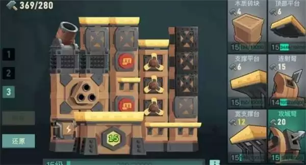 组建最强城堡,必须要有木质砖块、加固板以及平台。一般而言,木质砖块的摆放需要在高墙上,加固板则在木质砖块上加强防御,平台则尽量摆放一个以上,此举是方便躲避技能;