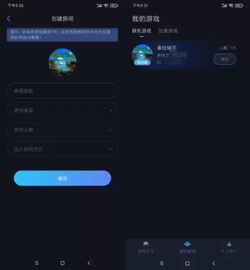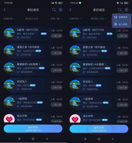 在游戏大厅中可以进行随机匹配,或者创建一个自己的房间方便和伙伴们开黑。