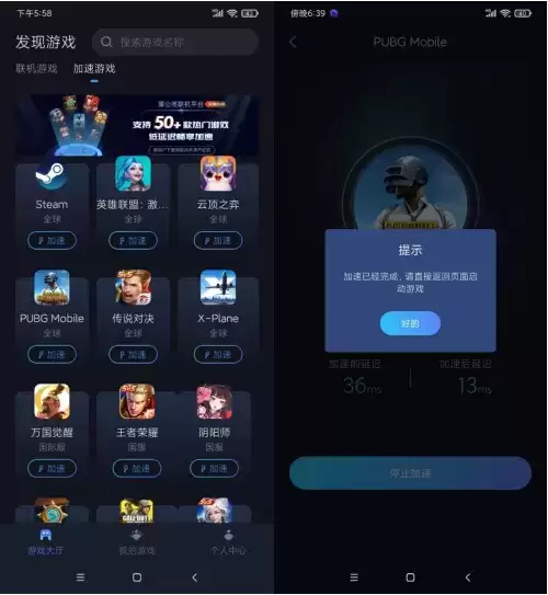 除了游戏开黑外,“蒲公英联机平台”在最新的版本中增加了“手游加速”的功能,现在比较火的云顶之弈、PUBG手游由于版本原因延迟都比较高,国内网络玩起来体验比较差。通过“蒲公英联机平台”的“游戏加速”功能降低延迟,提升游戏体验。