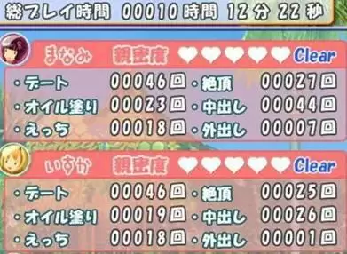 亲密度作为与女孩子亲密程度的表示,随着约会次数增加而发生特殊情景并得到提升。伴随着关系的进一步深化,会增加新的泳衣与饰品,涂油与H也成为可能。另外亲密度分为5个级别,涂油与H场景及其中的内容随着亲密度提升而增加。
