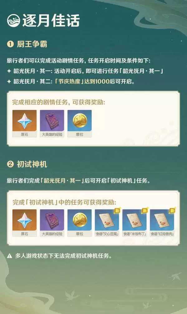 旅行者们可以完成活动剧情任务,任务开启时间及条件如下:
