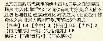 获得方法:万毒手400级后,在子时的大风天气下前往五毒万毒林触发。
