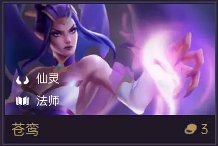 苍鸾就是莫甘娜,仙灵法师阵容的前排控场角色,金铲铲在两星的时候就提高了伤害能力,三星莫甘娜更是非常强力。