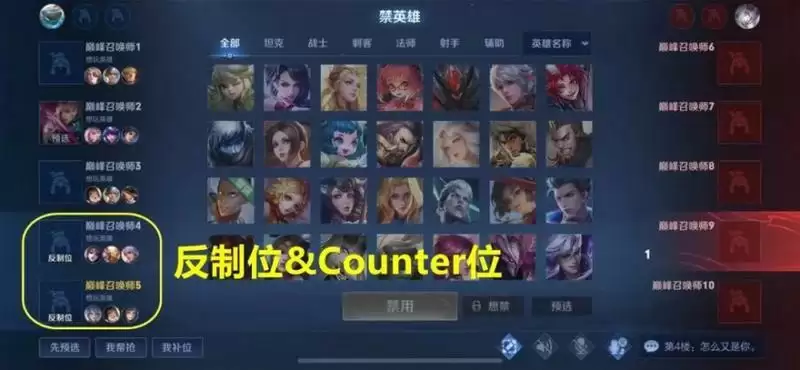 指后手选出克制敌方已选阵容的英雄,所以BP界面双方的四、五楼玩家,也被称为Counter位或反制位。