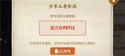 言归正传,使用王者密语的前提条件,就是拿到别人分享给我们的密语,这就相当于一种宣传游戏的活动任务。