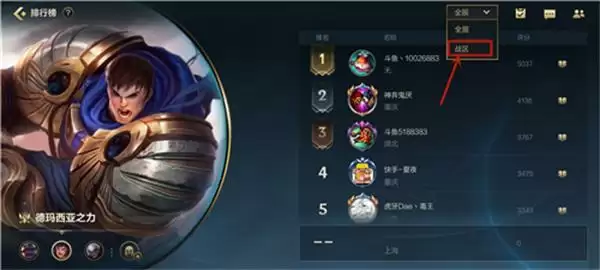 英雄联盟手游地区排名怎么设置