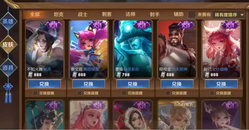 王者四款史诗推荐兑换