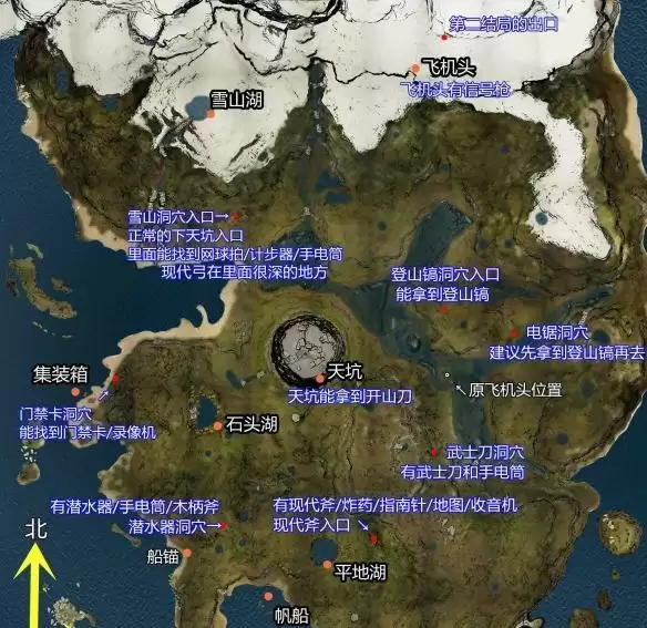 答:登山镐就在天坑的偏右上角,也就是东北方向,从天坑过河到右边的洞穴入口,进去能拿到登山镐。