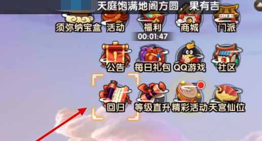 回归礼包、回归任务,百晓生,阴阳两界,背蛋,飞跃三清,炽焰妖王,降妖除魔,斗神坛,门派团队试炼,历练,商城购买,限时活动