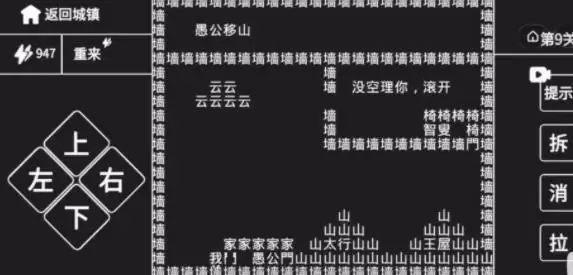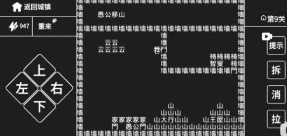 第一步:不同的文字是有不同的作用的,其中(破)字可以破坏城墙,这样就可以走了。