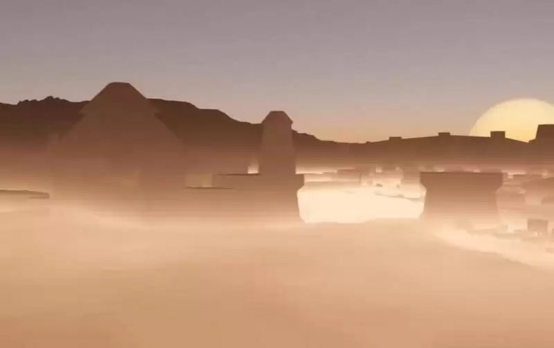 尽管须弥地区被称作草之国,不过这样荒凉且充满风沙的城区反而更像遗迹。但是当这位外服玩家还想继续向前探索时,派蒙的声音却突然出现,并冷不防的向玩家喊出“前面的区域以后再来探索吧”的招牌话语。而伴随着派蒙这段语音的出现,大家也反应过来这个须弥的过场动画只是玩家自己的二创。