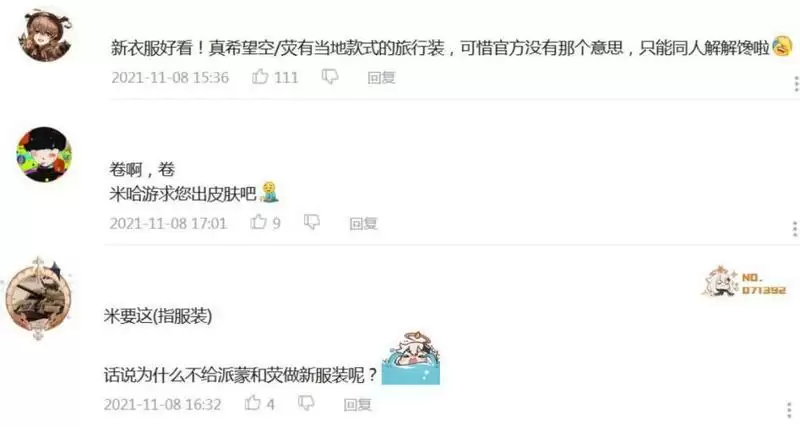 虽然真正的须弥模样依旧是个未知数,不过这位外服玩家的二创也有许多可圈可点的地方。在国服原神玩家的留言中,他们对荧妹的这个二创皮肤充满好感,并在评论区里呼吁原神正式也可以学习这个二创作者的思路,每隔一个地区就实装空和荧的当地款式服装的皮肤。