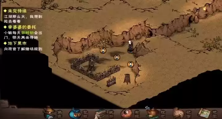 3、去十方集门口,闪避琴和尚拉你去闲聊,然后向三个人打听地下黑市,第一个是和尚旁边房子的一个路人,第二个是在野怪旁边的人,第三个在西北帐篷的黑先生。