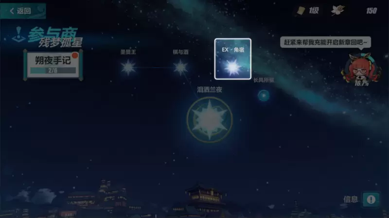 在主线·参与商中有剧情关和EX关,剧情关卡主要是看剧情,且只用通关一次即可拿完奖励。当前章回的剧情关打完才会解锁对应的EX关。