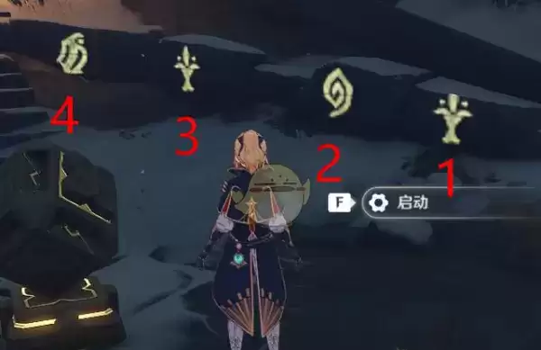 首先,这个洞窟的位置位于龙脊雪山这唯一一个七天神像的后左斜下方。其中,映入眼帘的便是一排符号,自右向左依次标记为1-8号。