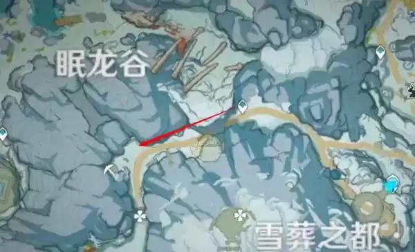 位于地图“眠龙谷”字样右下方锚点向西处,此处还有一处大型“独眼小宝”。