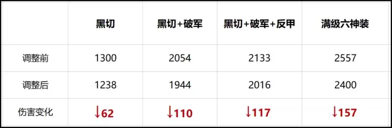 从数据可以看到,即便是满级六神装三技能也只降低了157点伤害,对于切后排几乎没有任何影响。