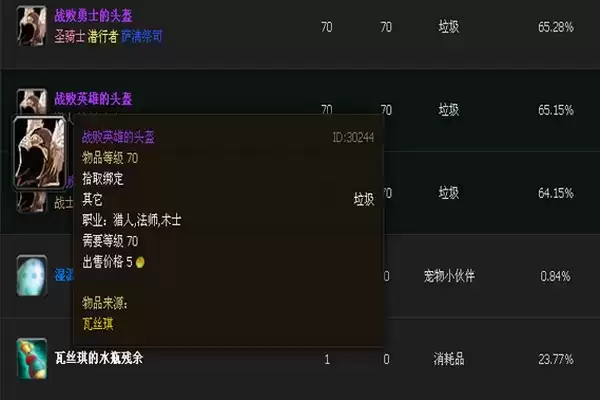 其中,战败英雄的头盔对应猎人、法师、术士三个职业的套装,战备卫士的头盔对应战士、牧师、德鲁伊三个职业的套装,战败勇士的头盔对应圣骑士、盗贼、萨满祭司三个职业的套装,其他部件也是如此。