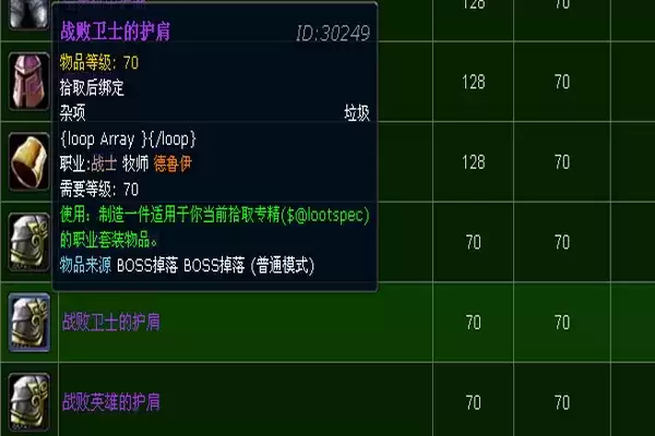 击杀boss后,有几率掉落战败英雄、战败卫士、战败勇士的护肩。
