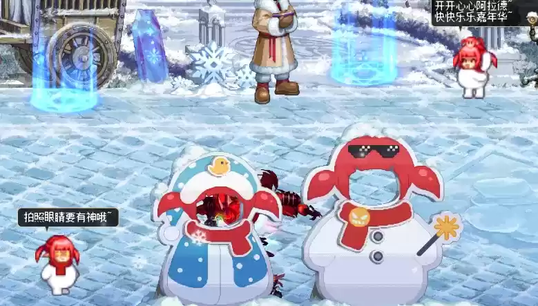 除了以上活动以外,在12.16版本中,还有一个特色改动,城镇中的画面全都变成了以雪景和女魔法为主的背景,大雪飘飘,各式各样的女魔法在街上玩耍,融化了老夫一颗少女心呀。