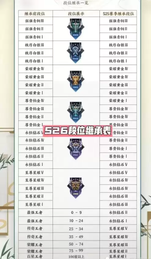 由于正式对段位进行重新划分,很多玩家还是不明白新赛季自己的段位继承情况,为此小编重新排列了S26段位继承表。