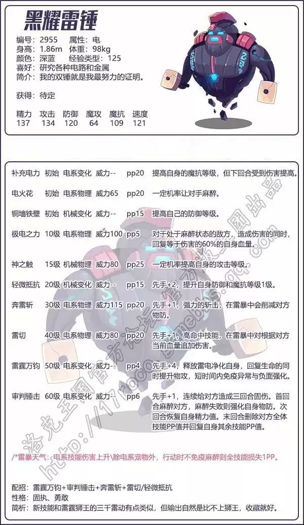 洛克王国黑耀雷锤资料卡