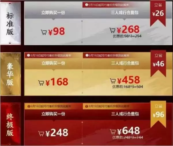 正式上入购游戏的方式可以拼团优惠,即一个人只要出三分之一的价格就可以得到。而steam版本则没有这种方法,不过后续可能也会进行打折。
