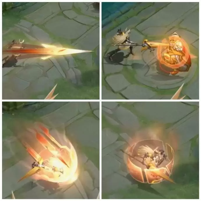 这次的特效可以说是最大的亮点。首先就是一技能的护盾有一种科技感,二技能则是一道光将雅典娜整个都覆盖住了。