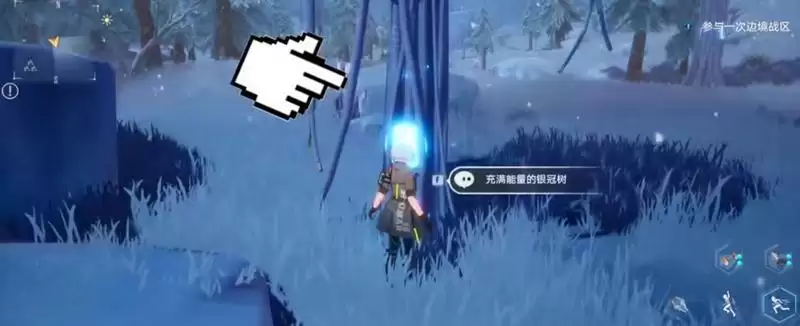 我们落地之后不用管旁边的任务和小怪,直接选择向西出发。一直往前走,会在圆坑左边发现一棵有红灯的低矮银冠树。