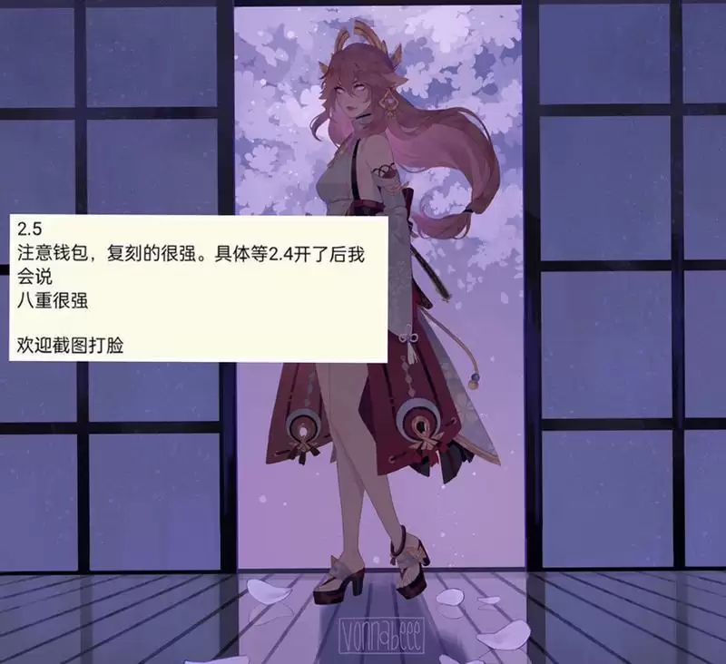 那么下个版本(2.5)会有一些什么角色呢?就在昨天“舅舅党 ”又出来发话了,此前的时候就出来说过一段这样的话。“注意钱包,2.5的会很强,具体等2.4公布后我会说,八重很强!欢迎打脸 ”,这句话有两个意思第一个意思很明显那就是2.5版本会有八重,这是很久就知道的事情;第二个意思就是等正式公布2.4版本卡池的时候就会曝出2.5版本的卡池信息,并且信誓旦旦地说了欢迎打脸!