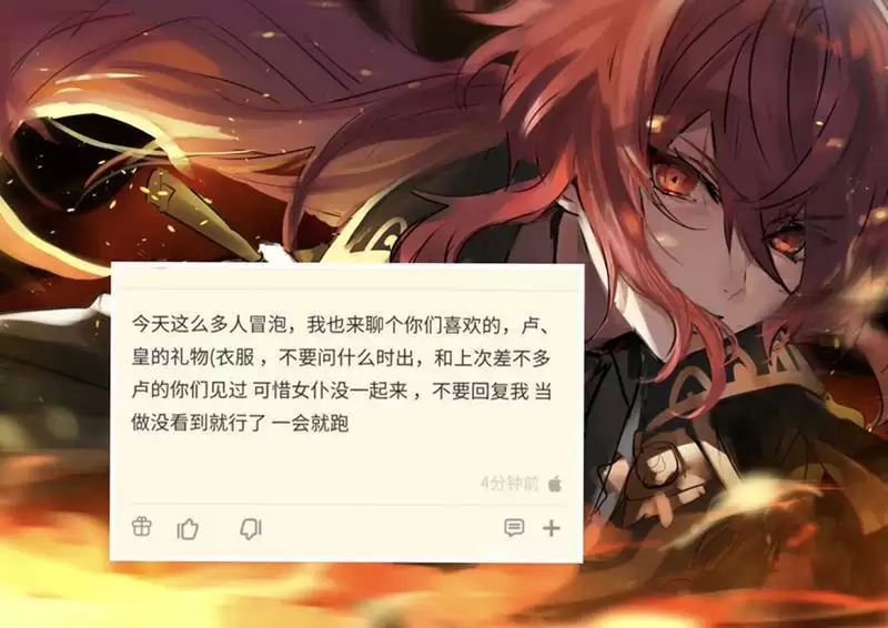 除了这次提起曝光2.5卡池的内容之外,还有一个有关于皮肤相关信息,同样也是一个自称是“舅舅党”的爆料,五星的皮肤是卢姥爷四星的是皇女。可能很多人有疑问为什么不出一些当前毕竟热门的角色皮肤比如钟离万叶雷神等等,其实从出刻晴皮肤那一刻就注定了后面皮肤顺序的走向,那就是先把常驻池的五星角色都出一个遍,后面才考虑限定池的,因为常驻池角色玩家拥有率高,就算是后面入坑的玩家也能享受这样的“福利”,所以肯定会优先常驻池角色皮肤,而不是谁热门就出谁。