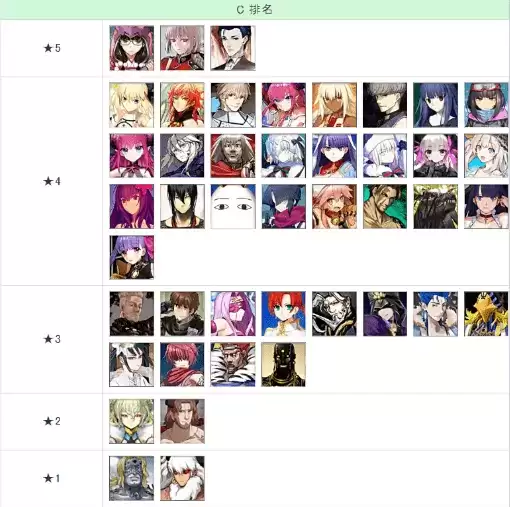 命运冠位指定C级英灵排名