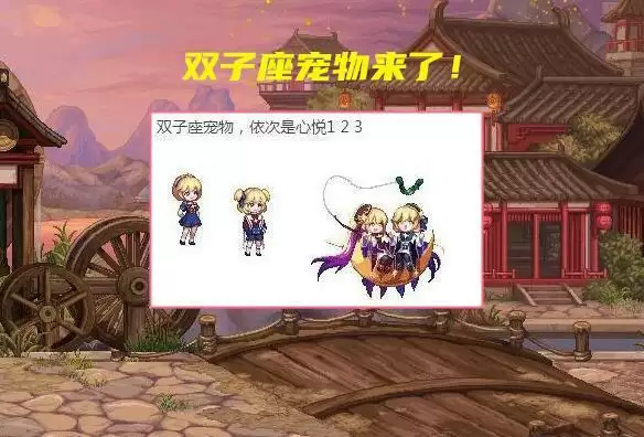 体验服拆包的过程中,心悦宠物也出现,主打风格为双子座。不过根据心悦等级,所给予的宠物,会存在着差异。心悦3宠物最萌,两个人合体,坐在弯弯的月亮上。但要兑换心悦3宠物,本身等级需达到,玩家需氪金才行。