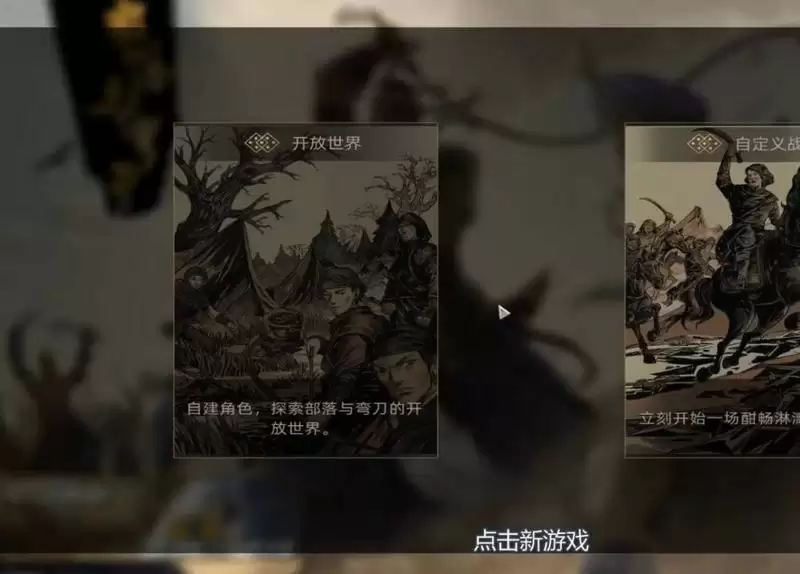 1,玩家首先进入到部落与弯刀的游戏中,点击新游戏,选择开放世界