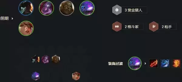 开局抢大件大棒或者攻速优先做剑姬复活甲法爆,或者巨杀正义输出都很炸裂,开局赏金开局最好,船长带着剑姬装备打工特别舒服,当然没有的话可以是找挑战装备给狼人打工,开出双挑战三炼金过渡也很舒服。前期质量足够看着可以打连胜直接拉人口走连胜,海克斯建议拿打架的星界狩猎律动,日炎棋盘均可,高爆发高回复的海克斯特别适合剑姬,当然有名流海克斯直接拿很强。