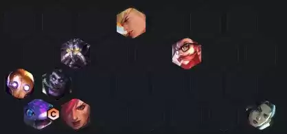 这套属于相对成熟的娱乐阵容,大师以下随便玩,下限不低,上限无敌,一局下来,追1-2个三星五费属于正常范畴。这套阵容克制大部分的物理阵容,如炼金螃蟹、辛迪刺、名流永恩等,稍微比较怕白魔法发明家和法师维克托。