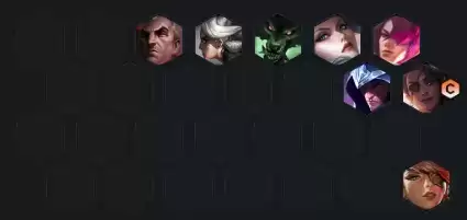 新版本大嘴削弱斗枪的环境好了起来,海克斯方面建议建议三阶的直接拿斗士之冕、泰坦之劲、不屑耸肩或者枪手之魂,都是比较不错的选择,无论是斗士的坦度还是枪手的输出都是质的提升,大后期还是比较看站位的,因为输出位比较单一,一旦被秒就很难打赢,保护好C位站位即可小心点刺客,塔姆去吃对面比较关键的前排如薇古丝。一套比较容易上分的阵容不容错过。