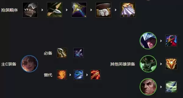前期可以做永恩或者拉克丝的装备。有防御装就直接给前排打工。来日女再换。如果打工牌是法系的就优先做拉克丝的装备是物理的就做永恩的。这样过渡会舒服很多。
