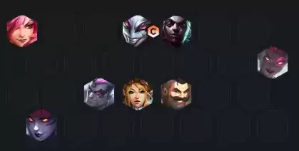 这套阵容可以在7人口搜牌,因为主C是4费卡,在7人口搜出2星永恩或者2星拉克丝再上8,如果前期过渡特别好,也可以直接4-4上8搜。