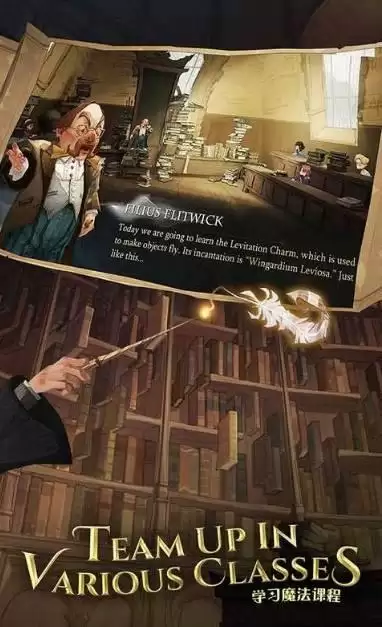 1.打开哈利波特魔法觉醒,点击魔法棒后选择图书馆